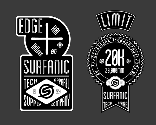Apparel Badges Apparel Concept sketches for vintage retro inspired range of clothing. surfanic-garmet-hangtags ukvaluation-3d-illustration Close